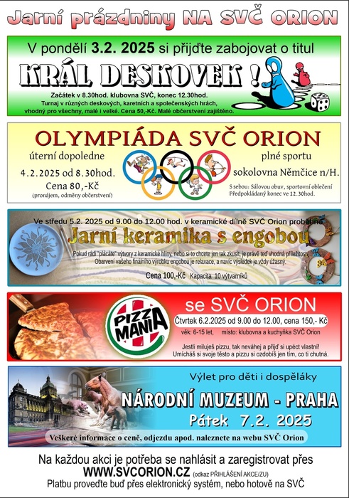 V pondělí o jarních prázdninách je připraveno pro děti dopoledne plné skvělých deskových her. Přijďte si vyzkoušet známé i neznámé hry v 8.30 v oranžové klubovně SVČ Orion. Cena 50,-Kč, připraveno malé občerstvení a pitný režim.