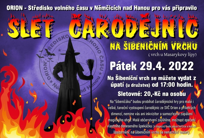 Máme zde zpět tradiční Čarodějnice. Tentokrát na novém mnístě - u Masarykovy lípy, na místě, které bude pro tuto příležitost přejmenováno na Šibeniční vrch. Čeká nás spousta soutěží pro děti i dospělé, vystoupení čarodějnických tanečnic, samozřejmě inkvizitor a zapálení velkého magického ohně. Start je na úpatí Šibeničního vrchu - u družstva a to mezi 17tou a 18tou hodinou. Vstupné je 20,-Kč na osobu. Připraveno i občerstvení. Pokud byste si chtěli opéct špekoňa, doneste si s sebou z domu, i chléb. K dispozici bude pouze hořčice a kečup. Pivo bude točené, nealko bude též. Upozornění!!! - Na Šibeničním vrchu nejsou k dispozici toalety. Ale akce nebude tak dlouhá, aby se to nedalo vydržet . Těšíme se na vás!