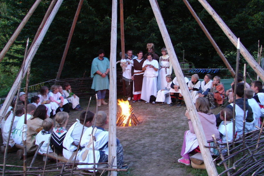 Oddíly se přeměnily na rody, vedoucí na vojvody a kněžny a celý tábor se proměnil ve slovanskou vesnici. Během čtrnácti dní, kdy děti měly spoustu her motivované známými i méně známými postavami z pověstí, jsme se podívali i třikrát do „města“ a to do Stražiska na koupáníčko, do Čech pod Kosířem, ve kterém jsme navštívili Hasičské muzeum a Muzeum kočárů a poté jsme přejeli do Náměště na Hané, kde nás na zámku přivítala pohádková prohlídka. Na posledním z výletů jsme si pak měli možnost prohlednout zámek a městečko Moravská Třebová.